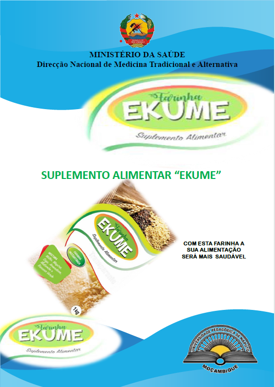 EKUME designação esta que na língua Emakua significa "Saúde". É um produto (suplemento alimentar) desenvolvido à base de produtos naturais, nomeadamente: Farinha de milho - (300g), mapira - (130g), soja - (215g), amendoim - (100g), farinha de banana verde - (60g), farinha de malambe - (100g), sal - (5g) e açúcar - (70g). Um género alimentício que se destina a complementar e/ou suplementar o regime alimentar normal de um ser Humano. O suplemento possui composto com efeito nutricional ou fisiológico que podem ser isolados ou combinadas, apresentados na forma de cápsulas, comprimidos, pílulas, farinhas, entre outras formas. |